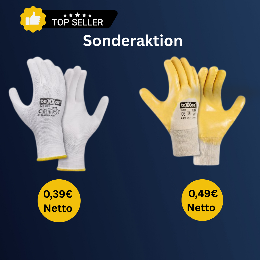 Die Texxor Arbeitshandschuhe bieten optimalen Schutz und hohen Tragekomfort für verschiedene Einsatzbereiche im Handwerk, in der Industrie und im Lager. Dank ihrer nahtlosen Verarbeitung und der hochwertigen Beschichtung sind sie besonders robust, griffig und angenehm zu tragen.